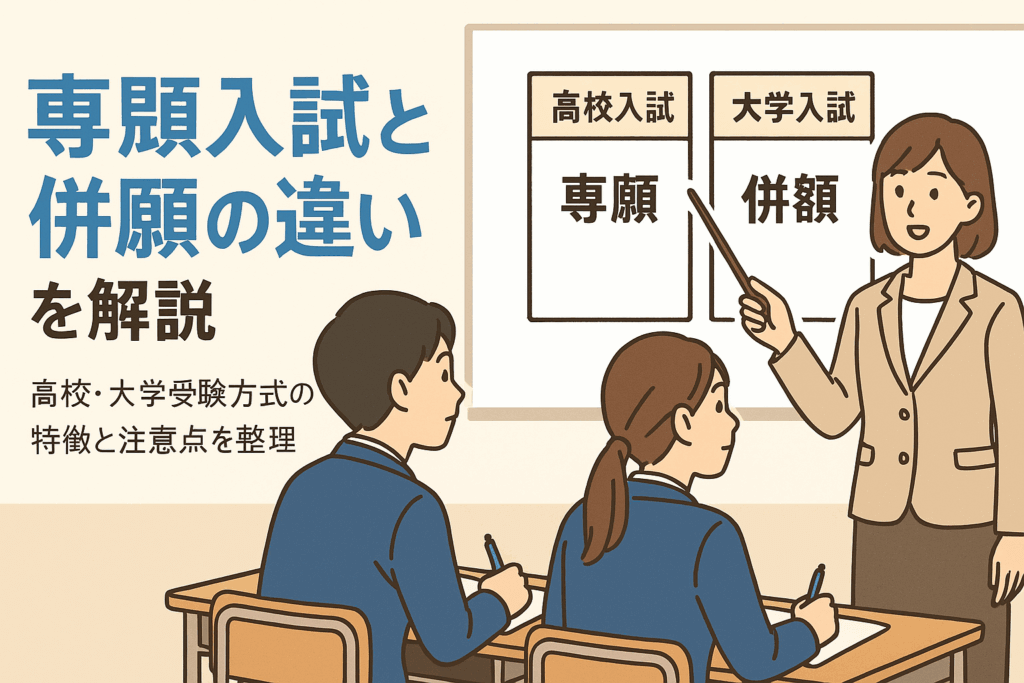 記事を読み進めていただければ、志望校の選び方や「専願・併願」で損しないための基礎知識、実態に即した具体例まで分かりやすく解説します。進路選択に後悔しないためにも、今知っておきたい専願入試の全体像をぜひご確認ください。